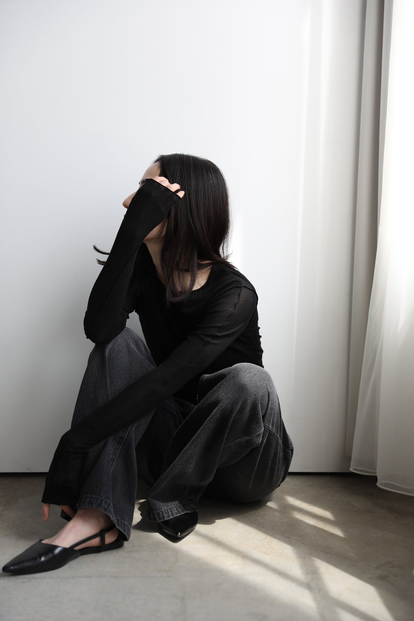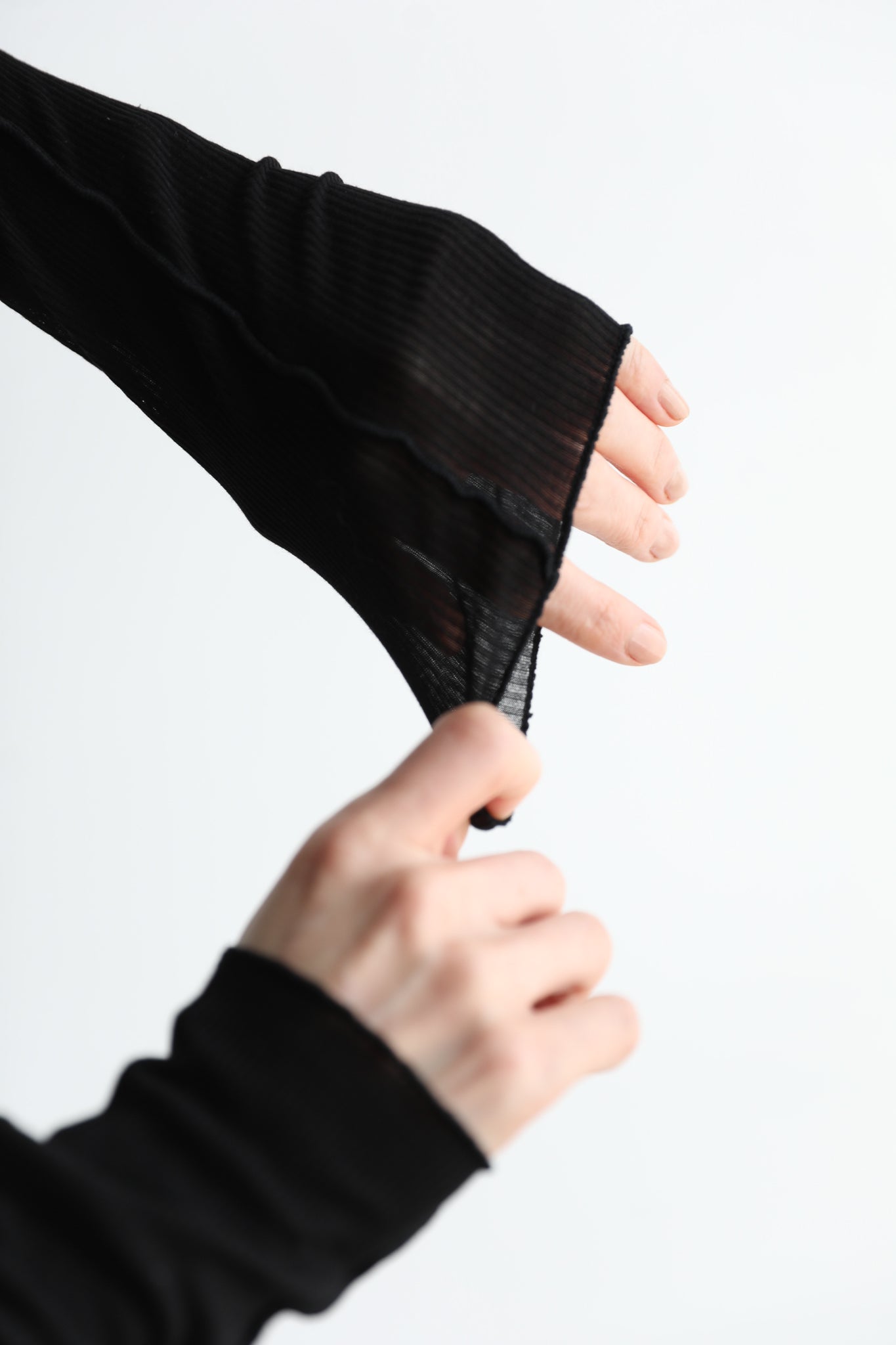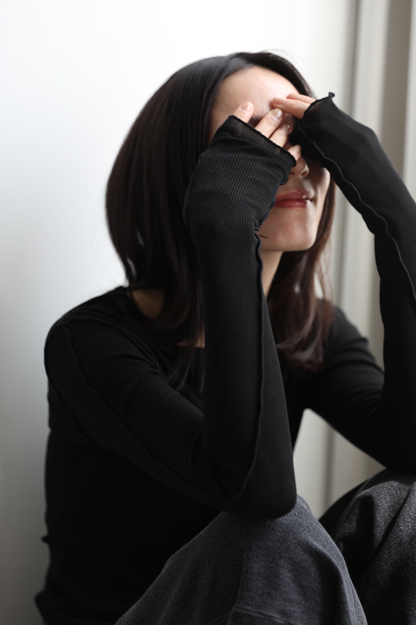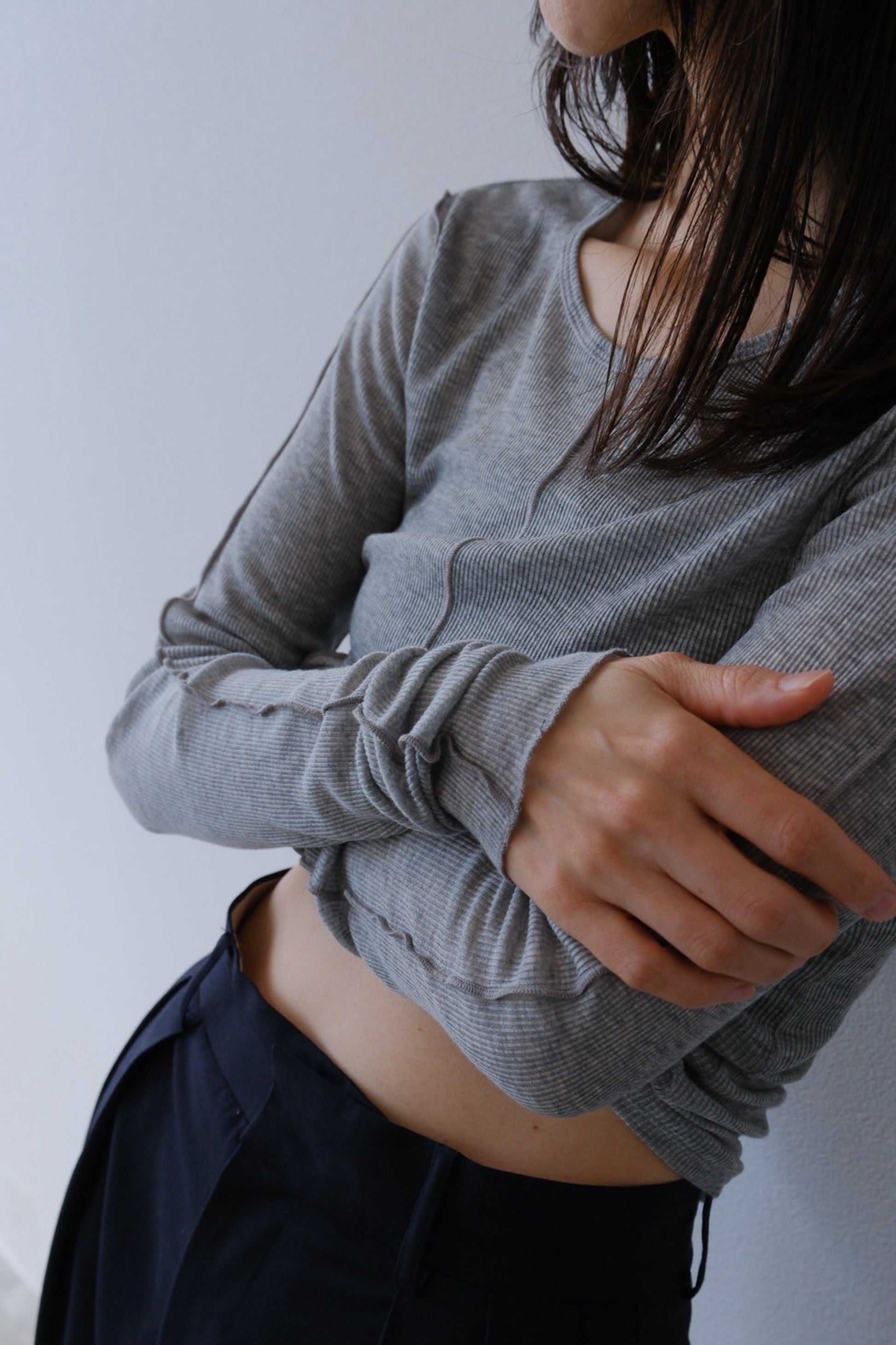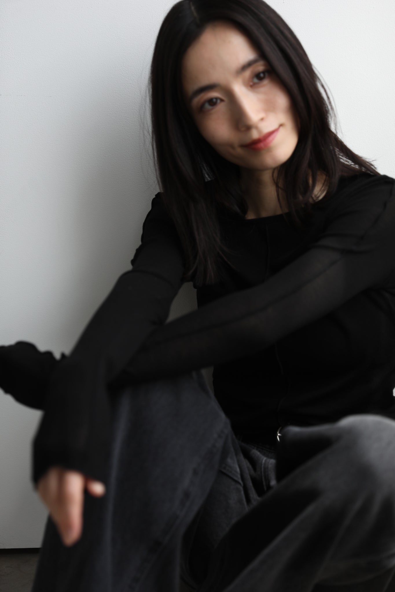 繊細な透け感と、肌に優しいパウダリーなタッチに拘ったAWAYUKIテレコを使用。